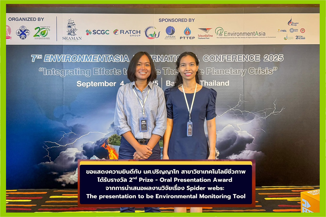 ได้รับรางวัล 2nd Prize – Oral Presentation Award จากการนำเสนอผลงานวิจัยเรื่อง Spider webs: The presentation to be Environmental Monitoring Tool