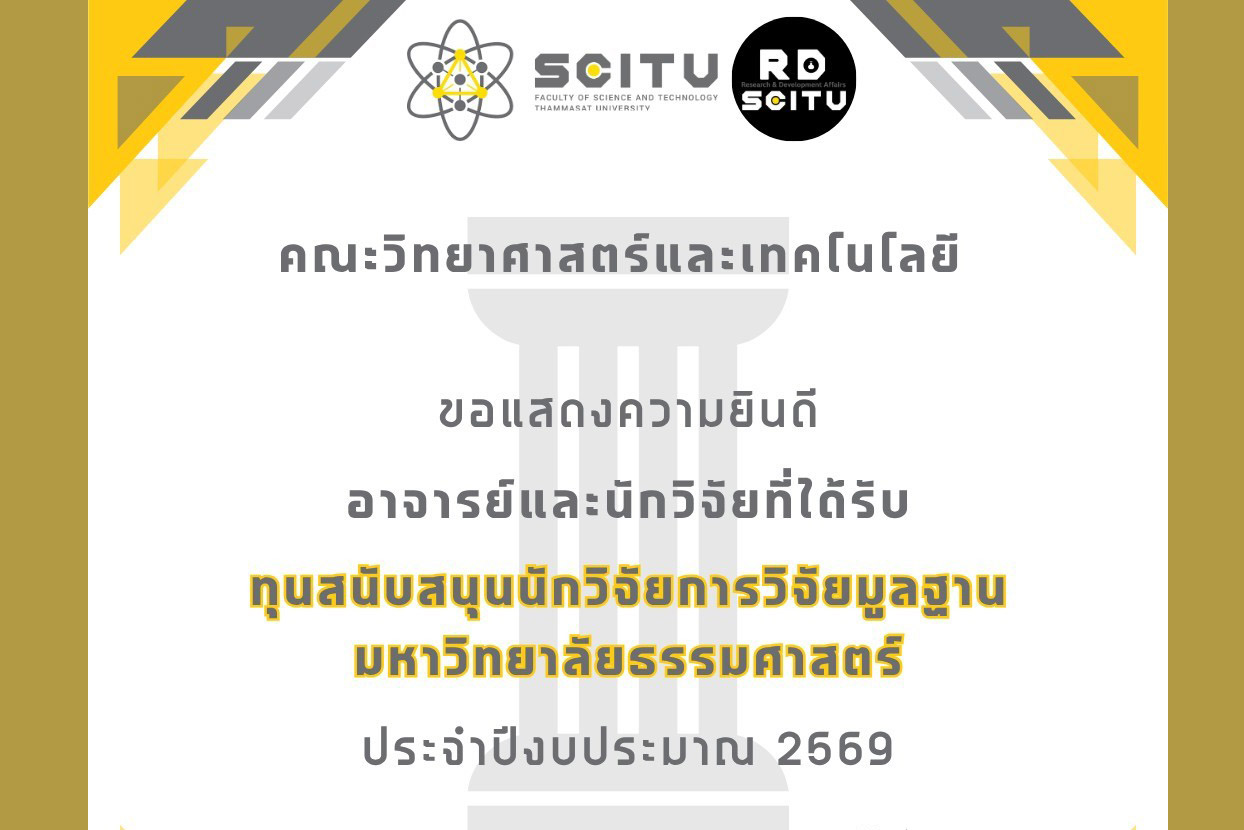 จากกองทุนวิจัยมหาวิทยาลัยธรรมศาสตร์ ประจำปีงบประมาณ 2569