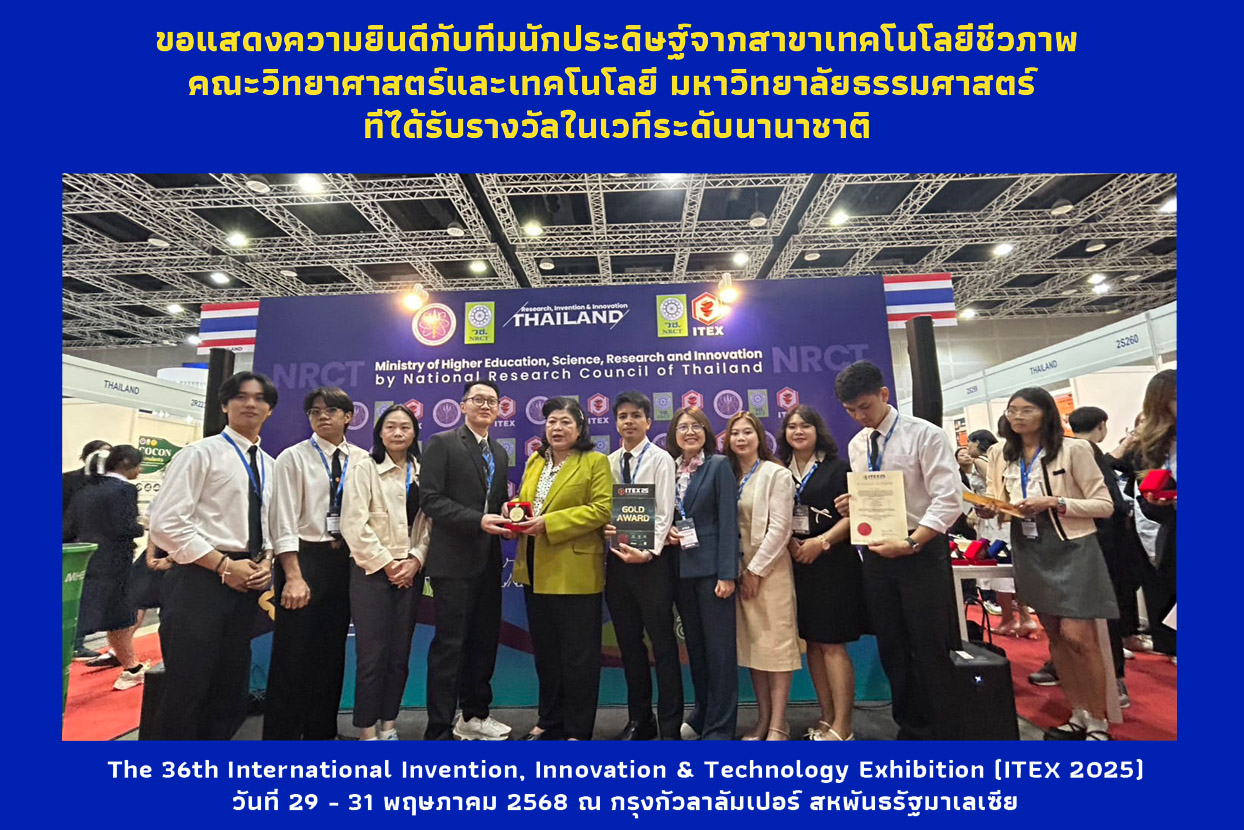 ได้รับรางวัลผลงานสิ่งประดิษฐ์และนวัตกรรมในเวทีระดับนานาชาติ ในงาน ITEX 2025 วันที่ 29 – 31 พฤษภาคม 2568 ณ กรุงกัวลาลัมเปอร์ สหพันธรัฐมาเลเซีย