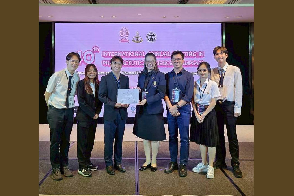 ได้รับรางวัล The Best poster presentation award หัวข้อ Precision-derived natural scopoletin from rubiaceous plants for bioactive ingredient in novel soothing-hydrogel formula ในงานประชุมวิชาการระดับนานาชาติ IAMPS40 ระหว่างวันที่ 13-14 พ.ย. 2568 ณ โรงแรมมณเฑียร กรุงเทพมหานคร โดยมี ผศ.ดร.ทิวธวัฒ นาพิรุณ อ.ดร.มันทิรา สุขเสริฐ และ อ.ภูภิภัทร ใจแก้ว เป็นอาจารย์ที่ปรึกษา