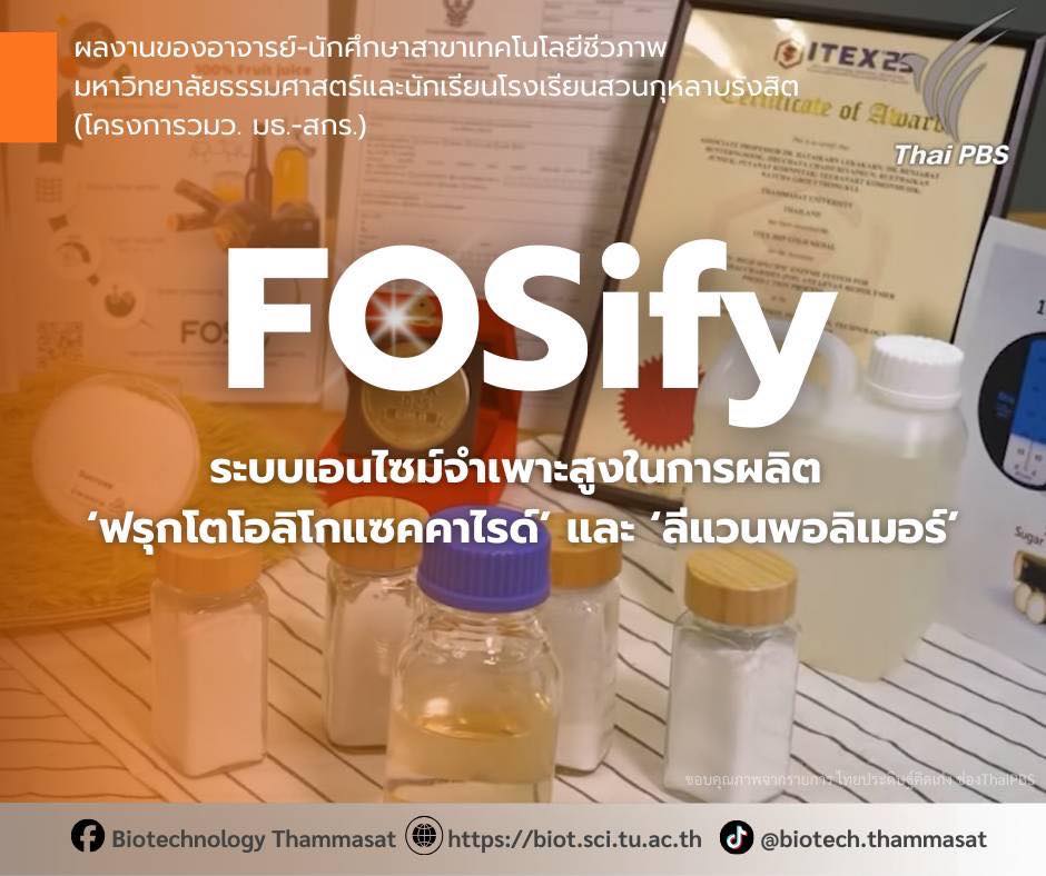 ผลงานนวัตกรรมของอาจารย์และนักศึกษาสาขาเทคโนโลยีชีวภาพที่ออกอากาศทางช่อง Thai PBS ![]()