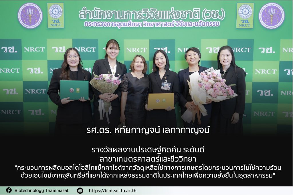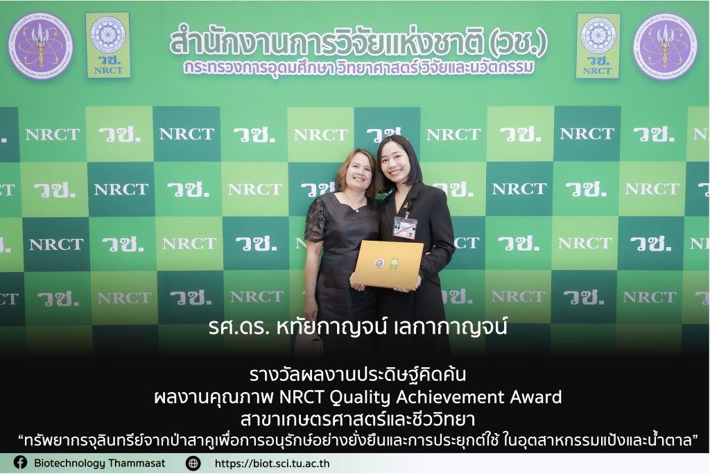 รางวัลผลงานวิจัย ผลงานคุณภาพ NRCT Quality Achievement Award สาขาเกษตรศาสตร์และชีววิทยา